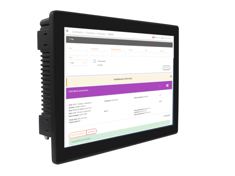 C4.0Client è una famiglia di terminali che si integrano perfettamente con il sistema C4.0Factory e semplificano l’interazione uomo macchina.