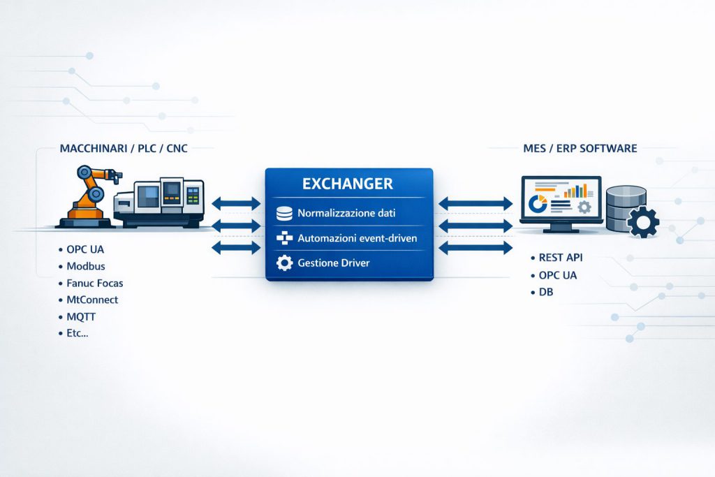 Ogni impianto ha esigenze specifiche. Possiamo analizzare insieme il tuo caso e mostrarti come Exchanger può semplificare l’interconnessione e migliorare la visibilità sulla produzione.